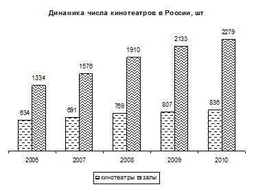 Это объясняется двумя главными причинами: · расширением сети кинотеатров. В период 2006 – 2010 гг. прослеживается четкая динамика роста числа кинотеатров. · возрождением привычки к походу в кино, утерянной в 1990-х