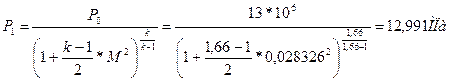 Находим отношение давления на выходе из сопла к давлению на входе: