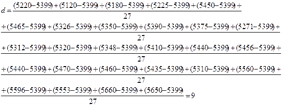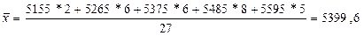 Найдем среднюю арифметическую взвешенную для объема продаж с помощью метода моментов. Выберем за число А центр данной группировки - 5485.