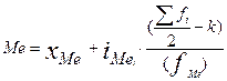 где хМе - нижняя граница медианного интервала; i Ме - величина медианного интервала;