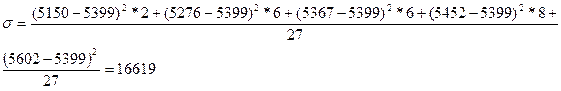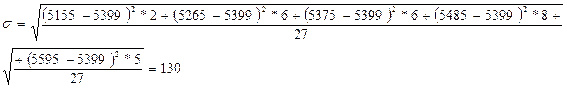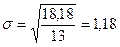 Найдем среднее квадратическое отклонение по рассчитанным данным:
