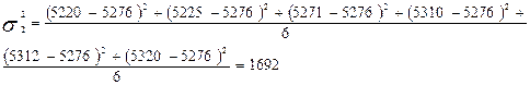 Рассматриваемый коэффициент вариации по объему продаж составляет 2,5%, следовательно рассматриваемая совокупность является однородной 1.6 Рассчитать дисперсии и произвести дисперсионный анализа) дисперсии: общую, межгрупповую и среднюю из внутригрупповых; б) проверить правило сложения дисперсий. Квадрат среднего квадратического отклонения дает величину дисперсии. Общую дисперсию, характеризующую вариацию признака под влиянием всех факторов, можно получить на основе ее составляющих - межгрупповой и внутригрупповой дисперсий. Общая дисперсия рассчитывается по формуле