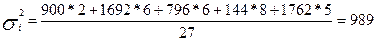 Средняя из внутригрупповых дисперсия равна 989. Рассчитаем дисперсии для второго признака - численности работников. Общая дисперсия:
