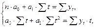 где t- период времени. Для выравнивания ряда динамики используется система уравнений, построенная по методу наименьших квадратов: