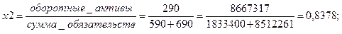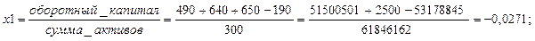 Исходя из данных таблицы, видно, что коэффициент иммобилизации заемного капитала за отчетный период снижается. Это говорит о том, что во внеоборотных активах сокращается доля заемных средств. Доля долгосрочных обязательств в общей величине заемных источников на конец года незначительно увеличилась. Но все равно значение коэффициента срочности заемных средств свидетельствует о том, что в заемных источниках преобладают краткосрочные обязательства. Коэффициент заимствования при формировании оборотных активов и коэффициент долгосрочного финансирования внеоборотных активов также значительно ниже 1, что положительно характеризует положение организации. В итоге можно сделать вывод о возможности улучшения финансового состояния организации. 10. Определение вероятности банкротства Для определения вероятности банкротства используются различные методики. 1.Методика Альтмана. Z=0,717x1 +0,847x2 +3,1x3 +0,42x4 +0,995x5 .