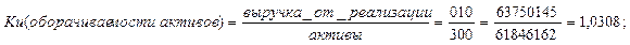 Значение данного показателя говорит о том, что доля дебиторской задолженности в совокупных активах составляет 5,27%. 9. Рентабельность активов