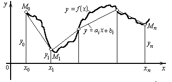 Отсюда y= ai x + bi ; xi-1 ≤ x ≤ xi , (1)