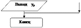 Алгоритм нахождения приближенного значения функции с помощью квадратичной интерполяции можно записать в виде структурограммы, как и для случая линейной интерполяции. Вместо формулы (1) нужно использовать (2) с учетом решения системы линейных уравнений (3). Интерполяция для любой точки x є [xo , xn ] приводится по трем ближайшим к ней узлам. Данный алгоритм представлен на рисунке