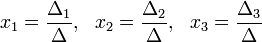 yi-1 = ai x2 i-1 + bi xi-1 + ci yi = ai x2 i + bi xi + ci (3) yi +1 = ai x2 i+1 + bi xi +1 + ci Данная система уравнений решается методом Крамера.