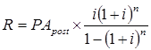 4) При расчете настоящей стоимости аннуитета, осуществляемого на условиях последующих платежей (постнумерадо), используется формула