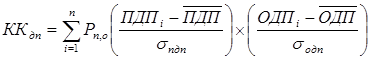4. Коэффициент корреляции положительного и отрицательного денежных потоков во времени позволяет определить уровень синхронности формирования этих видов денежных потоков в рассматриваемом периоде времени. Рассчитывается по формуле: