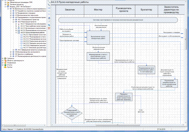 Между показателями и целями всех четырех проекций существует причинно-следственная связь. Например, увеличение прибыли от реализации продукции может быть обеспечено за счет повышения лояльности клиентов и привлечения новых клиентов, что в свою очередь связано с усилением работы с клиентами вследствие повышения качества услуг, что опять-таки определяется ростом квалификации персонала. Причинно-следственные отношения вытекают из стратегии компании и учитывают временной фактор в принятии решений и пропорциональную зависимость между параметрами. Акцент на причинно-следственные связи при составлении «сбалансированной таблицы показателей» также способствует пониманию сотрудниками компании стратегии компании, своих задач и их влияния на общий результат. В целом, использование Системы сбалансированных показателей позволяет менеджерам руководить такими важными процессами стратегического управления, как перевод видения стратегии и доведение ее до всех уровней системы управления, коммуникация и связь, бизнес-планирование, обратная связь, обучение и текущий мониторинг реализации стратегии. ССП выступает в качестве «инструмента реализации целей, позволяющего связать стратегическое управление с оперативным на основе ключевых показателей эффективности и причинно-следственных связей между ними». 5. Проектирование бизнес-процессов, используемые нотации Имея формализованную стратегию, можно приступить к проектированию бизнес-процессов компании, то есть определить ту деятельность, которую сотрудники компании должны осуществлять для реализации стратегии и достижения поставленных целей. Business Studio позволяет как построить комплексную иерархическую модель деятельности компании, так и описать ряд отдельных процессов. Для этого в распоряжение бизнес-аналитика предоставляются наиболее популярные и удобные нотации моделирования: · IDEF0 · Процесс (Basic Flowchart) · Процедура (Cross Functional Flowchart) · EPC (Event Driven Process Chain) Нотацию IDEF0 целесообразно использовать для построения иерархической модели бизнес-процессов верхнего уровня, а нотации Процесс, Процедура и EPC - для моделирования процессов нижнего (операционного) уровня. Business Studio позволяет менять нотацию моделирования при переходе с описания процессов верхнего уровня к описанию процессов нижнего уровня. В соответствии с процессным подходом для процесса задаются: 1) Владелец процесса, 2) Исполнители процесса, 3) Входы и Выходы, 4) Требования к срокам выполнения и ряд других параметров. Сочетание наглядных графических нотаций и параметров процессов обеспечивает максимально комфортную работу бизнес-аналитика от начала проектирования до выпуска регламентирующей документации. В рамках описываемых процессов, непосредственно на диаграммах или в свойствах элементов диаграмм, задаются операции с различными объектами деятельности (например, документами), а также их атрибутами (например, реквизитами документа).