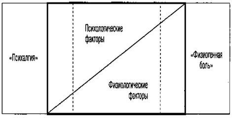 Малюнок 1.2. Співвідношення фізіологічних і психологічних чинників при фiзiогенних болях і психалгіях На малюнку 1.2. представлено можливе схематичне зображення співвідношення фізіологічних і психологічних чинників, що визначають переживання болю індивідом, і місце в цій системі психалгій. У описах болю типу «психалгії» є ряд особливостей, які необхідно враховувати зважаючи на їх діагностичне значення. Хворі випробовують утруднення при опису характеру болю, часто не можуть його чітко локалізувати, відсутні зовнішні ознаки переживання болю. Відсутня також значна динаміка і прогредієнтнiсть в перебігу болю, хоча не виключена ситуативна обумовленість симптому. Інтенсивність болю не змінюється при прийомі різних анальгетиків, навіть найбільш сильних з них. У феномені психалгії відбивається єдність фізіологічного і психологічного, об'єктивного і суб'єктивного, відчуття і емоції. Основною в характеристиці психалгій є не відсутність сенсорного компоненту (объєктивiзацiя його в кожному випадку залежить лише від наших технічних можливостей), а вирішальне значення в переживанні психічного компоненту болю, реакції індивіда на біль. Наступний малюнок (1.3.) відображає психосоматичні співвідношення при виникненні і усуненні головного болю з робіт Вольфа, що стали класичними.