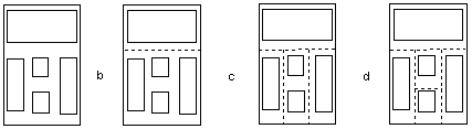 Рис.1 Последовательные шаги расщепления листа на колонки по методу "сверху вниз" Колонки образуют иерархическую структуру, т.е. каждая колонка может быть разбита на подколонки, причем на соседних уровнях ориентация разделяющих колонки линий меняется на ортогональную (так, например, если на некотором уровне колонки могут быть разделены горизонталями, то на следующем уровне они разделяются вертикалями). Именно поэтому такая модель описания структуры документов была названа деревом регулярного ортогонального чередования разбиений. На рис. 1 приведена схема, поясняющая данную модель. На рис. 1,a схематически показано расположение колонок на листе, на рис. 1,b-d - последовательные шаги расщепления, на рис. 2 - построенное "дерево регулярного ортогонального чередования разбиений"