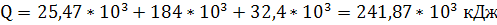 где днища и так далее), кДж;