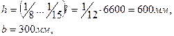 Рисунок-1.4 а – расчетное сечение в пролете б – расчетное сечение на опоре Сечение в пролете (рис.1.4, а) М=71,39 кН·м. Определим расчетную ширину полки таврового сечения согласно п. 3.16 [2]: при и принимаем Вычислим Так как то граница сжатой зоны проходит в полке, и расчет производим как для прямоугольного сечения шириной Вычислим
