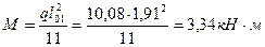 Для расчётов по первой группе предельных состояний: q = 11,676·2,2·1 = 25,69кН/м Для расчётов по второй группе предельных состояний: полная: qtot = 9,96·2,2·1 = 21,912кН/м длительная: ql =7,46·2,2·1 = 16,41кН/м Расчётные усилия: для расчётов по первой группе предельных состояний: