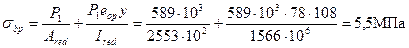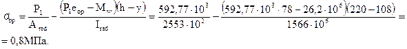 Напряжение σbp на уровне напрягаемой арматуры (то есть при у = еор =78мм) будет равно: