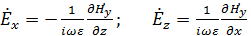 Стало быть, выражения для проекций векторов поля поперечно-электрического типа будут иметь вид: