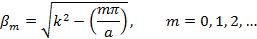 Рис. 2 - Зависимость составляющей Из выражений (1.16) следует, что распределение поля вдоль оси х имеет форму стоячей волны. Характер изменения поля на интервале Нетрудно убедиться, что компоненты электромагнитного поля (1.16) при Рассмотрим теперь формулу (1.15), определяющую постоянную распространения Легко заметить, что при