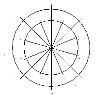 В стремлении достичь максимума показателя качества N, естественно выбрать сигнал ФМн с М=8 (N=65). 5. О построении ФМ и АФМ сигналов. В основу принципов построения ФМ сигналов заложено формальное расположение m сигнальных точек на окружности с радиусом R, зависящем от мощности (энергии посылки) сигнала,на равных расстояниях с угловым интервалом 2*p/m радиан. Примеры совокупностей сигнальных точек-векторов для случаев m=2,4,8,16: