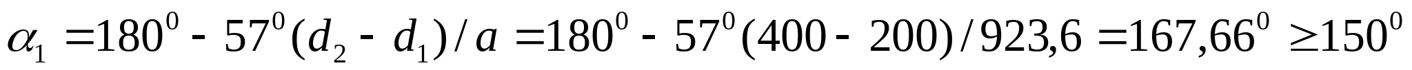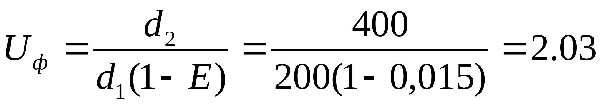 2. Расчёт плоскоремённой передачи. 2.1. Проектный расчёт передачи, Определяем диаметр ведущего шкива , мм мм Подбираем стандартный диаметр мм Диаметр ведомого шкива определяем с учётом скольжения ремня  мм Принимаем стандартный диаметр d2=400мм Вычисляем фактическое передаточное число и его отклонение   Ориентировочно определяем межосевое расстояние, мм мм Определяем длину ремня мм Выбираем стандартную длину ремня L=2800мм Уточняем межосевое расстояние, мм  Угол охвата ремнём ведущего шкива  Скорость движения ремня м/с м/с Определяем частоту пробега ремня  - допускаемая частота пробега прорезиненного ремня Определяем передаваемую ремнём окружную силу Н Допускаемая приведенная удельная окружная сила на единицу площади поперечного сечения ремня, Н/мм2 Н/мм2 при мм и =2,8мм Поправочные коэффициенты: Коэффициент динамической нагрузки и длительности работы Ср=1(спокойная работа); Коэффициент угла на ведущем шкиве Са=0,96; Коэффициент влияния центробежных сил СV=0,68 (при V=30 м/с); Коэффициент угла наклона шкивов к горизонту СQ=1;