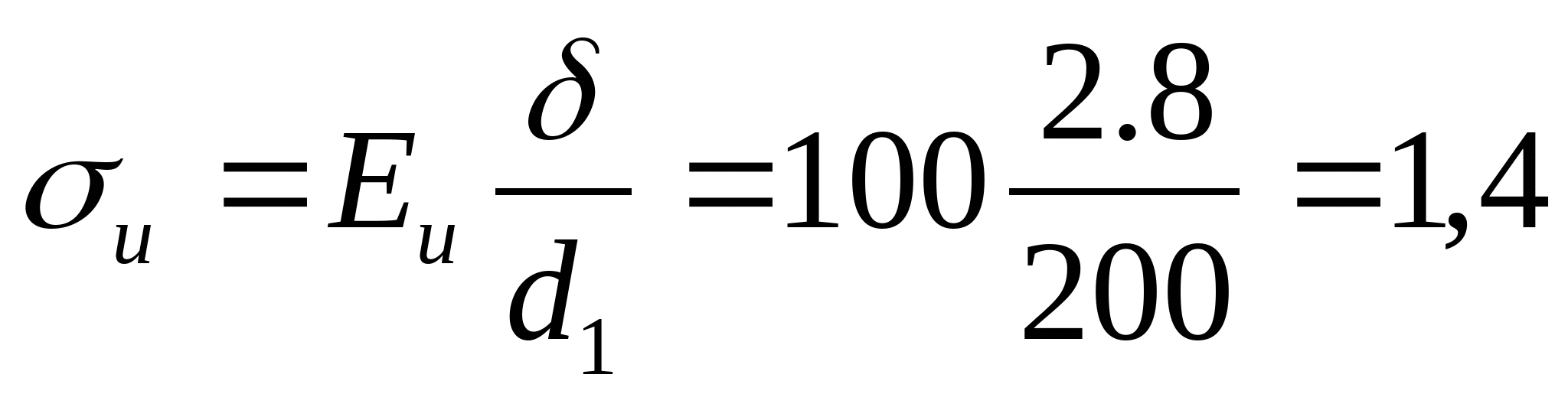 2.2. Проверочный расчёт передачи: Напряжение от силы F1  Напряжение от изгиба ремня Н/мм2 где Еи=100 Н/мм2 – модуль упругости Напряжение от центробежных сил Н/мм2 где =1100 кг/м3 плотность материала Максимальное напряжение в ведущей ветви ремня Н/мм2 Условие прочности ремня = 8 Н/мм Долговечность ремня, ч часов где Си=1,5 Сн=1 при постоянной нагрузке =7 Н/мм2 - предел выносливости материала Долговечность должна быть не менее 2000 часов.