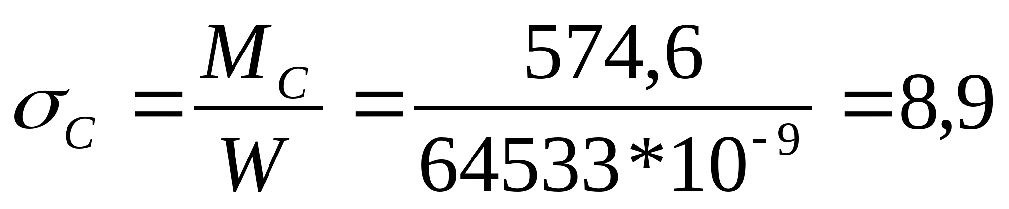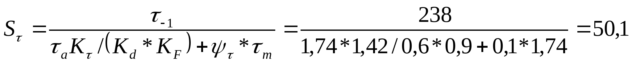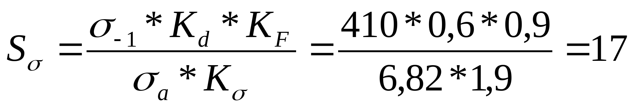 | | Общий коэффициент запаса прочности в сечении С:  Проверка запаса прочности в сечении А: =6,82МПа; 3,47МПа   Общий запас прочности:
