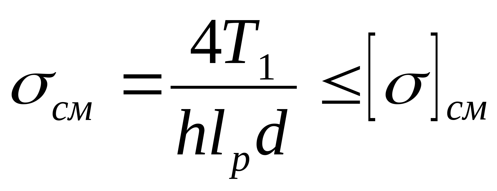 Для крепления на валу ведомого шкива ременной передачи и червячного колеса используем призматические шпонки из углеродистой стали с пределом прочности не ниже 500 МПа и допускаемым напряжением на сжатие = 60 - 90МПа. Для крепления шкива на валу =45мм используем шпонку призматическую обыкновенную, скруглённую, сечением длиной = 50мм по ГОСТ 23360-78 Условие прочности:  где мм