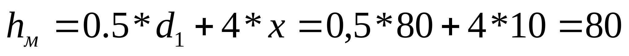 Диаметр выходного конца вала. мм где - 16МПа. Принимаем = 65мм мм Диаметр вала под подшипник и уплотнение: мм, принимаем d2 = 75мм мм Диаметр вала под червячным колесом: мм, принимаем =90мм мм Диаметр вала под второй подшипник: мм мм – для роликовых конических подшипников. Зазор между корпусом редуктора и деталями передачи: мм где L – расстояние по вертикали между крайними точками червяка и червячного колеса.