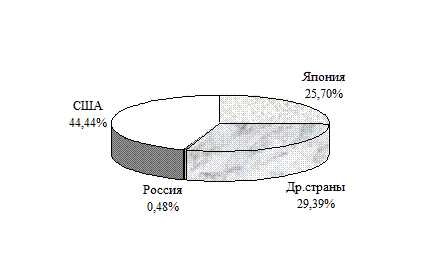 Диаграмма 5. Объем страховой премии по странам мира. Заключение.Страховая деятельность в России стала приобретать характер особого вида коммерческой деятельности только в последние годы, после ликвидации государственной монополии "Госстраха" и "Ингосстраха" и принятия Закона Российской Федерации "О страховании". Многочисленные коммерческие страховые общества, функционирующие ныне на страховом рынке России и осуществляющие страховые операции, до сих пор в своем подавляющем большинстве не приобрели необходимого опыта. Рыночные отношения в страховом деле и, соответственно, конкуренция не достигли высокого развития, как и масштабы страховых операций, о чем свидетельствует, с одной стороны, его высокая рентабельность у страховщиков, а с другой - низкий процент охвата страхового поля. Сфера страхования представляет собой инфраструктуру, способствующую повышению эффективности всех сфер предпринимательской деятельности. Этим и определяется значимость развития всех видов страхования в России, в т.ч. и для процесса интеграции РФ в мировое сообщество. Я считаю, развитие страхового дела в нашей стране должно основываться на изучении и взвешенном использовании опыта промышленно развитых стран, имеющих многолетние традиции по организации страхового рынка и законодательному регулированию деятельности страховщиков. Я думаю, одной из важнейших проблем создания полномасштабного страхового рынка в России является формирование современной законодательной базы, которая удовлетворяла бы интересы страхователей и страховщиков в проведении страховых операций. Реально же правовые отношения закрепляются в правилах и условиях страхования, предусматриваемых в страховых полисах различных страховых обществ, причем такие правила и условия характеризуются большим разнообразием и нестабильностью. Анализ указанных источников и практика их применения показывает несовершенство, а точнее незавершенность правового регулирования страховых отношений. Все это усугубляется отсутствием серьезных аналитических материалов по состоянию и перспективам развития страховой индустрии, а также научно обоснованных методик и пособий по организации деятельности страховщиков, регулирующих механизм предпринимательской деятельности. Для дальнейшего развития страхового дела не хватает также профессиональных публикаций по видам страховой деятельности, представляющих интерес для потенциальных потребителей страховых услуг. Мне кажется, что введение новых видов страхования не означает, что исчерпаны все возможности совершенствования правового регулирования страховых отношений. Наука и практика должны искать пути дальнейшего развития страхования, улучшения условий действующих и разработку перспективных видов личного страхования, отвечающих потребностям граждан. Список использованной литературы.1. Авдашева С., Руденский П. Страхование жизни как псевдострахование и его роль в развитии российского страхового рынка.//Вопросы экономики. – 2002 г.–№ 10.–82-95 с. 2. Балабанов И.Т., Балабанов А.И. Страхование. – Питер 2004 г.- 156 с. 3. Балабанов И.Т. Риск-менеджмент. – М.: Финансы и статистика, 1996 г. – 215 с. 4. Основы страховой деятельности: Учебник/Под. ред. проф. Т.А.Федорова. – М.: Издательство БЕК, 2001 г. – 768 с. 5. Страхование: Конспект лекций/Авт.-сост. Бендина Н.В