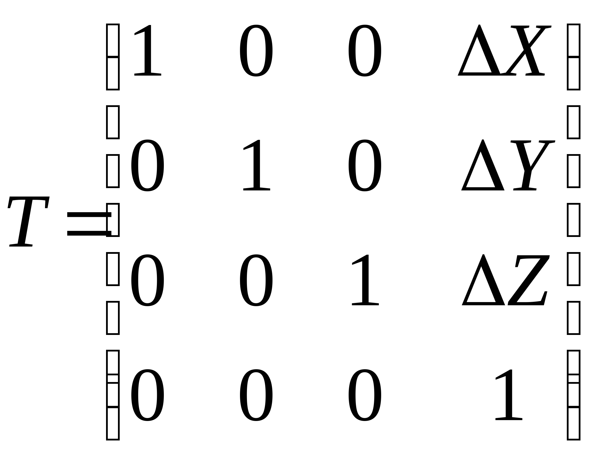 , где X, Y, Z – координаты точки. Это представление известно как точка в однородной системе координат. Согласно этому определению можно реализовать перенос умножением этого вектора на матрицу преобразования размером 4х4, чья последняя колонка содержит параметры переноса: