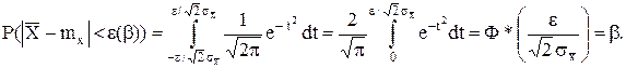 Требуется построить (найти) доверительный интервал le , соответствующий доверительной вероятности b, для среднего генерального mx . Так как среднее выборочное Ранее было показано, что