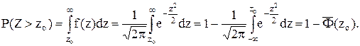 Найдем вероятность того, что гауссовская случайная величина Z с mz = 0 и sz = 1 принимает значения больше zo :