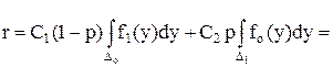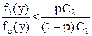 Для того, чтобы интеграл был минимальным, а значит и минимальное значение принимала функция риска r, нужно в состав Dо включить только те у, в которых подыинтегральная функция С1 (1-р) f1 (y) – pC2 fo (y) < 0, а в состав D1 - остальные значения у. Последнее неравенство можно записать в виде