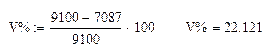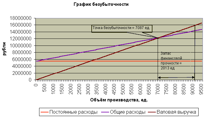 Запас фин. прочности = 9100 – 7087 = 2013 единиц или в %: