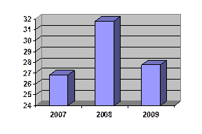 Рентабельность оборотных средств к 2009 году выросло на 2%. Это говорит что основные фонды используются эффективно. Обеспеченность трудовыми ресурсами