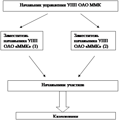 Рисунок 1.1 – Структура управления УПП ОАО ММК 1.2 Общие положения учетной политики ОАО «ММК» Учетная политика ОАО «ММК» разработана в соответствии с законодательством РФ о бухгалтерском учете, нормативными актами Минфина РФ и органов, которым федеральными законами предоставлено право регулирования бухгалтерского учета. Под учетной политикой понимается принятая организацией совокупность способов ведения бухгалтерскогоучета - первичного наблюдения, стоимостного измерения, текущей группировки и итогового обобщения фактов хозяйственной (уставной и иной) деятельности. К способам ведения бухгалтерского учета относятся способы группировки и оценки фактов хозяйственной деятельности, погашения стоимости активов, организации документооборота, инвентаризации, способы применения счетов бухгалтерского учета, системы регистров бухгалтерского учета, обработки информации и иные соответствующие способы и приемы. ОАО "ММК" использует машинно-ориентированную форму ведения бухгалтерского учета, с использованием программного обеспечения «OracleE-BusinessSuite», унифицированных форм первичных учетных документов или их электронных версий (в том числе журналов-ордеров). Хозяйственные операции отражаются в регистрах бухгалтерского учета в хронологической последовательности и группируются по соответствующим счетам бухгалтерского учета. Бухгалтерский учет имущества, обязательств и хозяйственных операций ведется путем двойной записи на взаимосвязанных счетах бухгалтерского учета. Ответственность за организацию бухгалтерского учета в организации, соблюдение законодательства при выполнении хозяйственных операций несёт руководитель организации. Главный бухгалтер несет ответственность за формирование учетной политики, ведение бухгалтерского учета, своевременное представление полной и достоверной бухгалтерской отчетности, обеспечивает соответствие осуществляемых хозяйственных операций законодательству Российской Федерации, осуществляет контроль за движением имущества и выполнением обязательств. Учет производственных и финансовых операций в ОАО “ММК” централизован и организован по передельному принципу с выделением на отдельный баланс металлургического комплекса, жилищного отдела, филиала "Бускульский карьер". Дочерние общества ОАО «ММК» осуществляют свою деятельность согласно уставу и учредительному договору, а также системы хозяйственных договоров с ОАО «ММК» и иными организациями. Учреждения, созданные ОАО «ММК», осуществляют свою деятельность согласно уставу. В подразделениях ОАО «ММК», выделенных на отдельный баланс, бухгалтерский учет осуществляет бухгалтерская служба подразделения. В остальных подразделениях ОАО «ММК» бухгалтерский учет осуществляется централизовано по отраслевому и технологическому принципу. На отдел производственного бухгалтерского учета возложена обязанность по отражению хозяйственных операций в подразделениях ОАО «ММК» по учету основных средств и нематериальных активов, НИОКР, материально - производственных запасов, учету выпуска продукции и затрат на производство, по учету получаемых и предоставляемых услуг, калькулирование продукции, по формированию резерва под снижение стоимости МПЗ, а также участие в проведении очередных и внеочередных инвентаризаций (проверок на