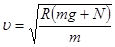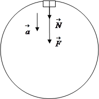 При повышении температуры давление насыщенного пара станет больше, парциальное же давление не изменится, так как конденсация происходит при той же температуре. Поэтому относительная влажность в этом случае уменьшится. Задача С2. В аттракционе человек массой 60 кг движется на тележке по рельсам и совершает "мёртвую петлю" в вертикальной плоскости по круговой траектории радиусом 5м. Какова сила давления человека на сидение тележки при скорости прохождения нижней точки 10м/с? Ускорение свободного давления принять равным 10м/с2 . Решение: изобразим на чертеже траекторию движения и силы, действующие на человека в верхней точке: