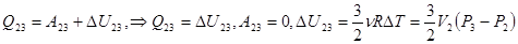 Ответ: 10м/с. Задача С3. На диаграмме представлены изменения давления и объёма идеального одноатомного газа. Какое количество теплоты было получено или отдано газом при переходе из состояния 1 в состояние 3? Решение. Общее количество теплоты определим по формуле: Q123 =Q12 +Q23 Q12 =A12 +ΔU12’ где А12 =РΔV=P1 (V2 –V1 ),