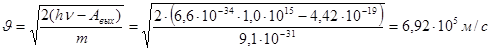 Тепло будет получено. Ответ: 20 кДж. Задача С4. Катод фотоэлемента с работой выхода 4,42∙10-19 Дж освещается светом с частотой 1,0∙1015 Гц. Вылетевшие из катода электроны попадают в однородное магнитное поле с индукцией 8,3∙10-4 Тл перпендикулярно линиям индукции этого поля. Чему равен максимальный радиус окружности R, по которой движутся электроны? Решение. По закону сохранения энергии для фотоэффекта имеем формулу: hν=Aвых + Ek , Ek =mv2 /2, тогда hν=Aвых + mv2 /2. Отсюда определим скорость электрона: