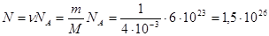 Количество ядер, содержащихся в массе 1 кг гелия, найдём по формуле: