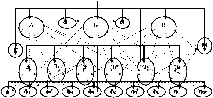 Рис. 6. Схема организационной структуры ЗАО «БИОТЭК-Киров» СА-собрание акционеров; Р- руководитель организации А- главный бухгалтер; Б- заведующая склада; В- главный менеджер; С1 , С2 –кладовщики; К- кассир; М- менеджер; З 1-25- заведующие аптечным пунктом Ф1-25–фармацевты --------- функциональная связь ______ линейная связь 2.3 Анализ внешней и внутренней среды предприятия Фармацевтический рынок - это совокупность производителей, поставщиков, аптечных организаций, потребителей, а также самих товаров аптечного ассортимента. Успех фармацевтической организации на рынке зависит от сложившихся в маркетинговой среде факторов. К факторам внешней маркетинговой среды относятся: демографические, экономические, политические, природно-экологические условия, производители и поставщики продукции, конкуренты, контактные аудитории. Фармацевтическая организация не в силах активно влиять на эти факторы, поэтому она должна к ним приспособиться. Обслуживающий контингент населения: - молодые семьи с детьми дошкольного и школьного возраста - 60%; - пожилые люди в возрасте более 55 лет - 30 %; - студенты, служащие, рабочие 10 %; Обслуживающий контингент среднего уровня, в основном ориентируется при покупке товара на качество, цену и экономичность. Контингент составляют два типа потребителя: · обычный; · покупает при случае. Предприятие самостоятельно отбирает круг поставщиков, ориентируясь, на наиболее привлекательные предложения, цены, условия поставки. Основным поставщиком является аптечный склад ООО «БИОТЭК» с собственной продукцией заводов ОАО « Марбиофарм», ОАО «Биосинтез», ООО «Биодез», ЗАО «СИА Интернейшнл», ООО «ПРОТЕК-26» - 20 процентов.К факторам внутренней среды относятся: организационные, кадровые, финансовые, материально- технические и другие факторы, которыми организация может управлять. Анализ факторов внутренней маркетинговой среды необходим для того, чтобы выявить сильные и слабые стороны организации, а затем сравнить их с ситуацией, сложившейся во внешней маркетинговой среде. В случае если выявлено преобладание сильных сторон в деятельности организации и во внешней среде существует благоприятная ситуация - наблюдается рыночный успех и наоборот. На предприятии работают квалифицированные специалисты: - фармацевты, провизоры; - экономисты; - менеджеры; - маркетологи. . 2.4 Экономический и финансовый анализ предприятия Товарооборот в 2006 г. вырос по сравнению с 2004 г. на 152,63%, издержки увеличились на 126,26%. Вследствие этого, уровень издержек в % к обороту розничной торговли снизился на 5,00%. Товарооборот на 1 рубль текущих затрат вырос на 38,88%. В результате того, что показатели среднесписочной численности работников (в т. ч. и торгово-оперативного персонала) увеличилась на 150%, рост объема товарооборота в расчете на 1 работника и на 1 работника торговой группы составил 1,05% и 26,32% соответственно %. Фонд оплаты труда вырос на 129,79%. (табл.3) Таблица 3Размеры деятельности ЗАО «БИОТЭК-Киров»