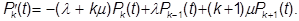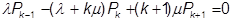 2. Составление уравнений. система с ожиданием в случае простейшего потока и показательного времени обслуживания представляют собой случайный процесс Маркова. Найдём те уравнения, которым удовлетворяют вероятности Pk (t). Одно из уравнений очевидно, а именно для каждого t