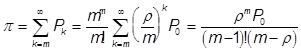 при k ³ m Система уравнений (6)-(8) в этих обозначениях принимает такой вид: z1 =0, zk -zk+1 =0 при k ³ 1 Отсюда заключается, что при всех k ³ 1 zk =0 т.е. при 1 £ k < m kmPk =lPk-1(10) и при k ³ m mmPk =lPk-1(11) Введем для удобства записи обозначение r=l/m. Уравнение (10) позволяет заключить, что при 1 £ k < m