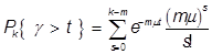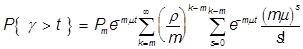 Если условие (14) не выполнено, т.е. если r³ m, то ряд, стоящий в квадратной скобке уравнения для определения P0 , расходится и, значит, P0 должно быть равно 0. Но при этом, как следует из (12) и (13), при всех k ³ 1 оказывается Pk =0. Методы теории цепей Маркова позволяют заключить, что при r³ m с течением времени очередь стремится к ¥ по вероятности. 4. Некоторые подготовительные результаты. Во введении мы уже говорили, что для задачи с ожиданием основной характеристикой качества обслуживания является длительность ожидания требованием начала обслуживания. Длительность ожидания представляет собой случайную величину, которую обозначим буквой g. Рассмотрим сейчас только задачу определения распределения вероятностей длительности ожидания в уже установившемся процессе обслуживания. Обозначим далее через P{g> t} вероятность того, что длительность ожидания превзойдет t, и через Pk {g> t} вероятность неравенства, указанного в скобке, при условии, что в момент поступления требования, в очереди уже находится k требований. В силу формулы полной вероятности имеем равенство P{g> t}= Прежде чем преобразовать эту формулу к виду, удобному для пользования, приготовим некоторые необходимые нам для дальнейшего сведения. Прежде всего для случаев m=1 и m=2 найдем простые формулы для P0 . несложные преобразования приводят к таким равенствам: при m=1 P0 =1-r,(17) а при m=2