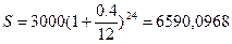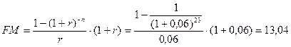 G=S-S”=14800-14080=720 руб. Задание 7. Определите наращенную сумму вклада в 3000 руб. при сроке вклада 2 года по номинальной процентной ставке 40% годовых. При начислении процентов: а) один раз в год; б) по полугодиям; в) поквартально; г) ежемесячно Условие: P=3000 руб., n = 2года; j=40% S - ? Решение: а)m=1 где m- число периодов начисления в год, N –общее число периодов начисления. б)m=2 в)m=4 г)m=12 Задание 8. Определите фактор текущей стоимости авансового аннуитета, возникающего 23 раза при ставке дисконта 6% годовых. Условие: n = 23; i=6% FM - ? Решение: