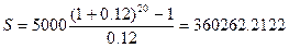 S=5000*72.05244=360262.2