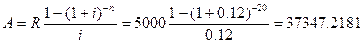 Задание 20 Фирма сдала в длительную аренду на 20 лет производственные мощности. По условиям договора об аренде все издержки по обслуживанию производственных мощностей несет арендатор, а чистый доход фирмы составляет в год 5000 $. Эта сумма должна быть уплачена в конце каждого года. Деньги вносятся в банк под годовую ставку сложных процентов 12%. Определить наращенную сумму и текущую стоимость ренты. Условие: n =20 лет, R =5000 $, i=12% S - ? A-? Решение