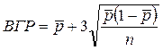 Параметры, необходимые для построения p -карты (уровень ЦЛ, значения ВГР и НГР), определяются по формулам: